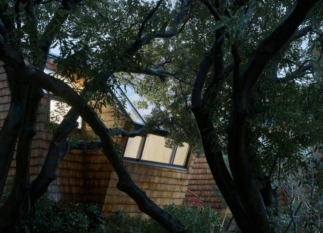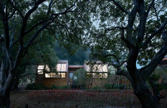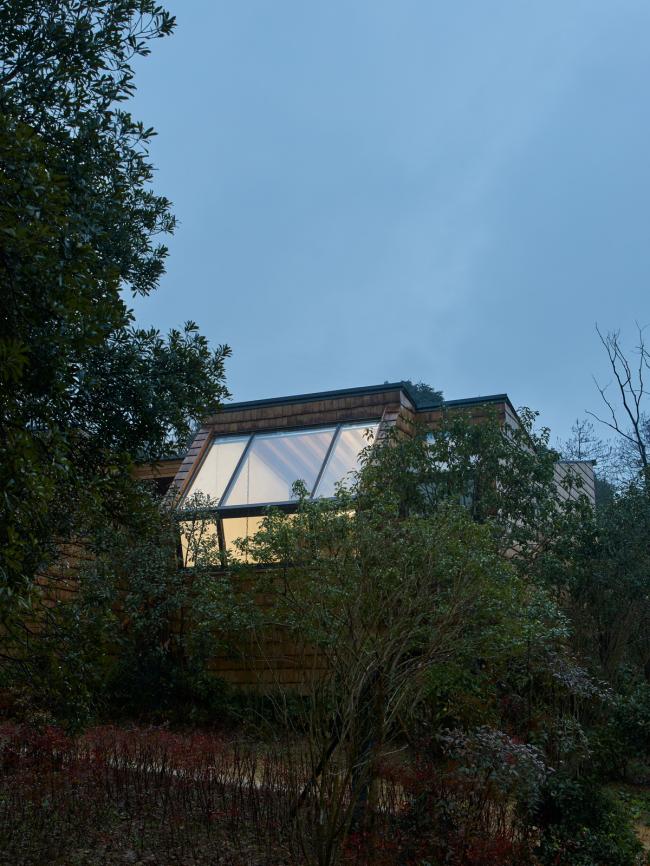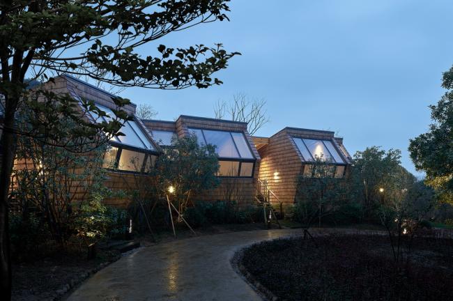 场地特性激发创作,密集的杨梅树成为场地建筑的一道天然屏障,建筑便隐匿其中。稍远望去(BIM培训),仿佛一组长了眼睛的木质立方体,若隐若现的漂浮在成片的杨梅林间,它们似乎生长于林间大地,渴望越过树梢,窥视星空的美妙。