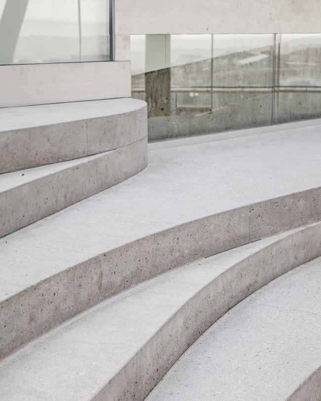 室内材料采用了石头和浇注混凝土,木材与不同的表面结合后形成了一幅天然的画布,而外部材料采用了玻璃和铝板材,为学校的雕塑设计创造了一个中性背景。