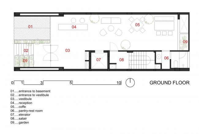 所有的房间都通过建筑中心的楼梯和电梯相连接,太阳光和风可以通过天井进入建筑。天井中有铁楼梯连接(BIM学习)小型房间和普通出租房,这个楼梯的尽头是顶层公寓的悬挂的绿色盆栽。建筑的前部还有配备了木百叶窗的阳台,在保温,通风的同时,也提供了休闲的绿色空间。
