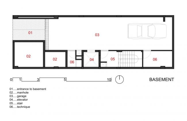 第二个要解决的问题是功能方面上的。地下室用于停车和放(BIM建筑)置设备。首层是门厅和公共设施。第二层到第五层是出租房间:建筑前部空间是厕所,厨房,客厅和工作室与卧室一体的小型房间;后部空间是普通的出租房,一个可以灵活打开关闭的帘子分隔了客厅和卧室,厨房和卫生间也布置得很漂亮整洁。