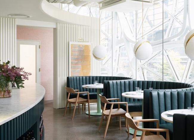 James Beard美食大奖获奖的主厨Renee Erickson和合作伙伴在2018年秋季揭开了 Willmott幽灵的序幕,它位于球形建筑的一层。建筑是由Heliotrope建筑事务所设计的,室内设计师是 Price Erickson,最终由Dovetail实施建造。该球形建筑是亚马逊西雅图园区的核心:玻璃封闭的拱形结构覆盖着工作区域和似云雾森林的温室,拥有来自世界各地的数千种植物。