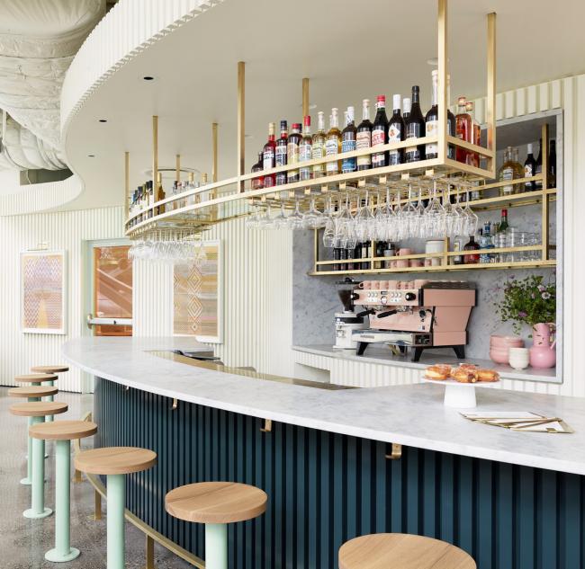 由此产生的建筑和室内设计使用当代语言唤起了经典主题。不受时间影响的大理石,瓷砖和黄铜打造了有机曲线的桌台,辐射状的架子。在Willmott幽灵,美食和建筑在一个尊重意大利烹饪传统的空间中碰撞,同时也能看到与它所处位置相符的现代结构。