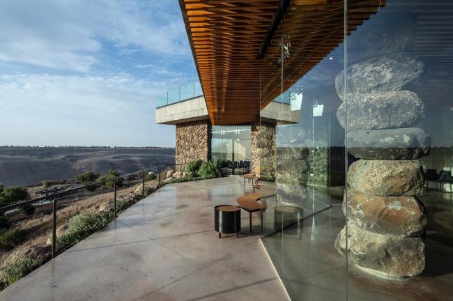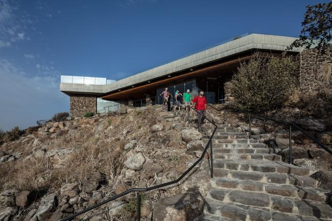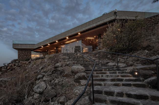 考古遗址内有一座古老的犹太教堂,据判断建于5世纪,在749年的一次地震中损毁,最近对其又进行了部分修复。遗址名为Ein Keshatot(阿拉伯语:Umm el-Kanatir),是希伯来语“拱形之泉”的含义,意为古代犹太教堂后方于拱形结构中流淌着的一汪泉水。本案建造想法是在场地规划的后期阶段提出的,由于场地入口,访客流量控制中心,必要服务设施以及场地预展等均作为满足游客需求的必要功能纳入到解决方案之中,因此游客中心的建设成为了旅游综合体的重要组成部分。