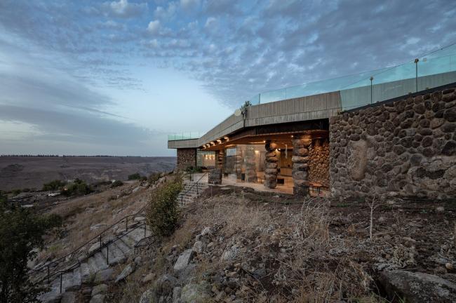 如果说开敞的玻璃幕墙犹如山中之眼,那么顶部木制天花就仿佛睫毛一样,光线透过天花柔和地充满室内空间。裸露的混凝土,玄武岩以及锈蚀钢板等材料的选择反映了将结构嵌入自然的意图,凸显着该地区的特点。材料的原始特点伴随着凉爽无声的氛围,在暗淡的光下,古代遗址的涵义显露无遗。参观的旅程在这里开(BIM学习)始,也在这里结束,人们从不同的方向回到大厅,总结并回味着所看到的一切,通过“隧道”悉数散去,离开开阔的戈兰高地。