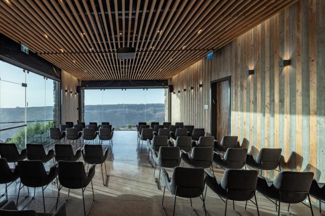 这是一个沟通游客与考古遗址的场所,参观者可以在空(BIM设计)间内来回移动,在不断变化的裸露自然以及建筑师的作品之间来回穿梭,在遗址的室外景观之间,于火山的土壤之中慢慢浮现,同室外相比,室内设计体现了轻松、柔软的特征。在这里,游客进行跨越时间的移动,这座遗址跨越了1500多年,成为古老的宗教礼拜场所同以色列努力重建其民族认同的当代政治背景之间的调和。