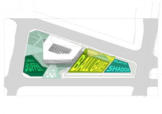 在相对紧张的用地,如何创造出富有吸引力的公共空间,鼓励人与人的交流?如何提升建筑与景观的互动,创造有历史根源并能代表新城发展的形象?如何定义适合中国未来生活方式的群众体育建筑类型?我们提出了以下策略: