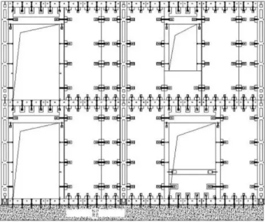 现浇带连接是在预制剪力墙安装于设计位置后,在要连接的上下层剪力墙之间设置现浇带,然后将预留钢筋通过搭接方式连接,剪力墙安装就位后浇筑混凝土成为一个整体。
