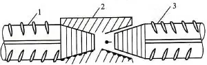 1-已挤压的钢筋;2-钢套筒;3-未挤压的钢筋