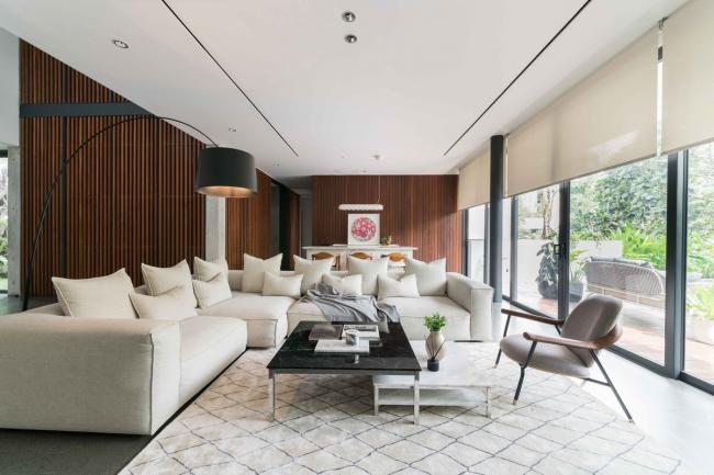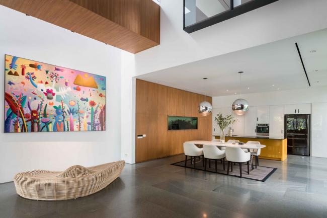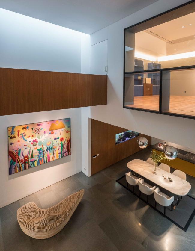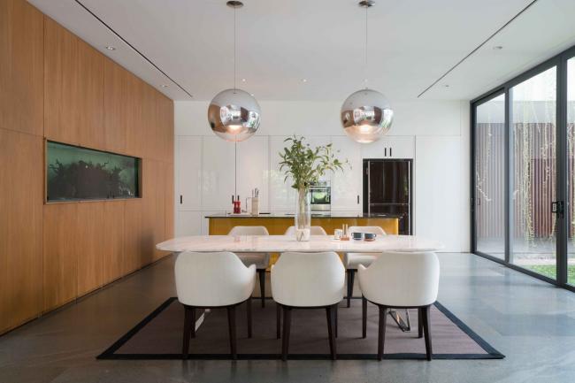 为了满足客户的风水要求,该场地被一个十字布局松散地分隔开,厨房和公共区域由一个庭院与卧室隔开。