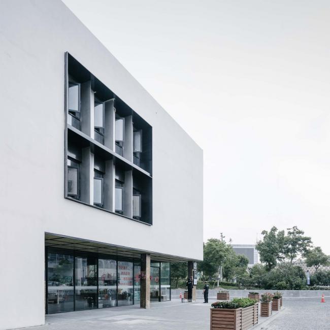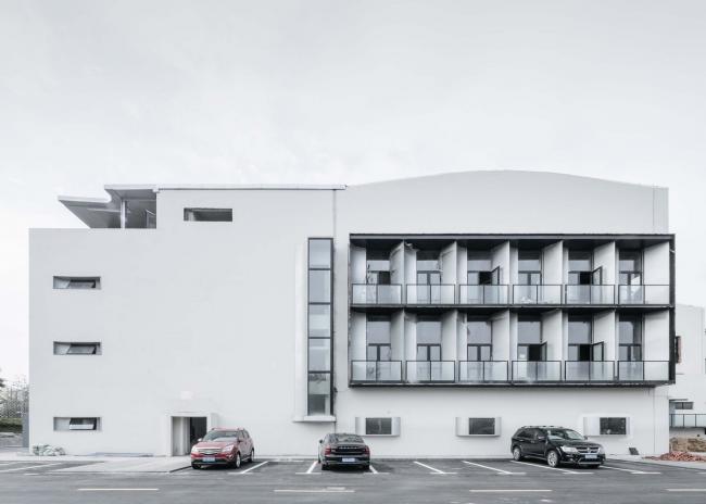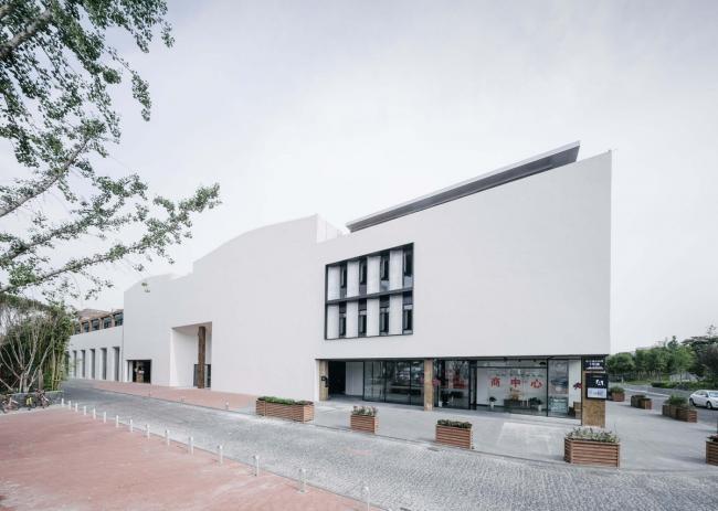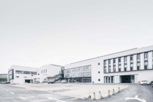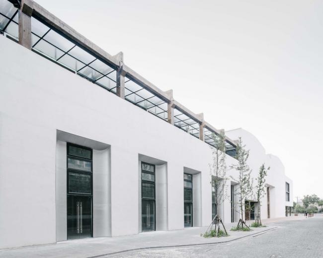本案对上海嘉定京沪高速旁一组上世纪90年代的工业车间和辅楼进行了全面的改造与更新。方案取“素胚瓷片”为概念,抽离出来的片状弧面形成了建筑外立面的原型母题和主展厅的基本语汇。设计保留了原有的建筑结构和场地关系,但通过内部钢结构夹层的增量,原空间的工业属性被赋予了新的艺术氛围及业态内容。封闭而进深的庞大车间体量被打开,新置入的景观连廊和玻璃天棚让园区的前后场地得以被连接,室内空间得以更好地被入驻企业及人群所使用。