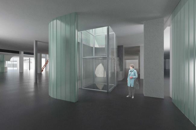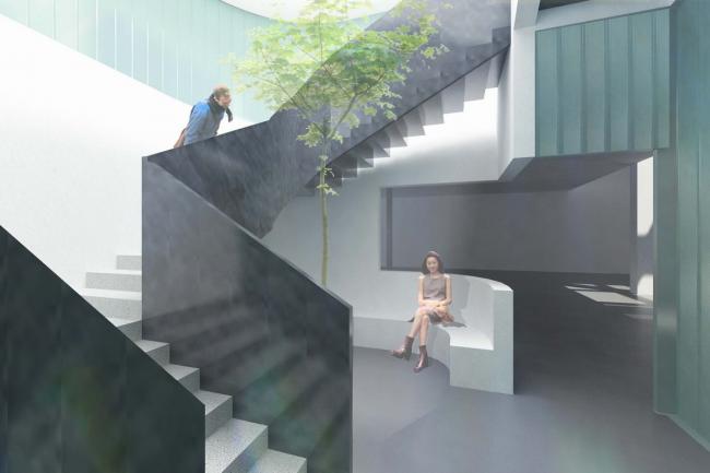 我们将逐步完善在建筑中置入的光井设计,灵动的处理采光与通风问题:穿越各个楼层的“瓷片”内部有楼梯或电梯,隔墙由白色墙体或U型玻璃组成,“光线、弧线、质感”无不让人产生对陶瓷艺术的浓厚兴趣。