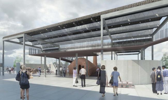 面向未来此片区的进一步发展,我们设计预留出用作市民参与公共活动的广场空间,连廊直通“艺术综合体”的内部,作为北广场的入口。一方面意图通过渐进的方式逐步完善空间;另一方面,在设计解剖与重塑文化的同时,让本区域成为周边市民参与互动开放的城市公共空间。在未来,改造后的“申窑艺术中心”将作为北虹桥艺术示范园区与南侧的公园相呼应,并与江桥周边的万达商业广场等商业资源形成互补,成为北虹桥的新文化地标。
