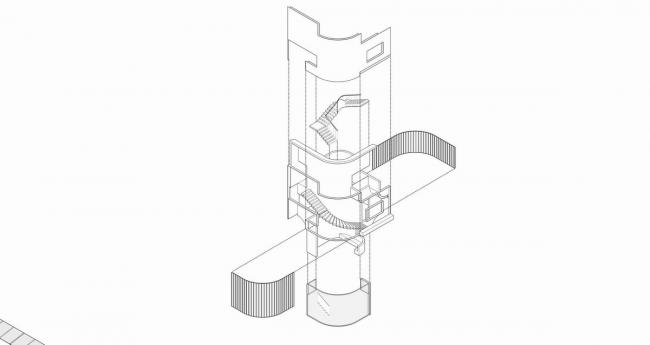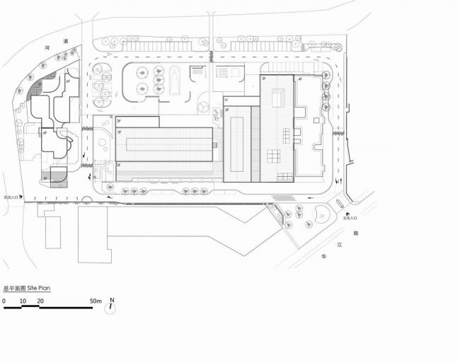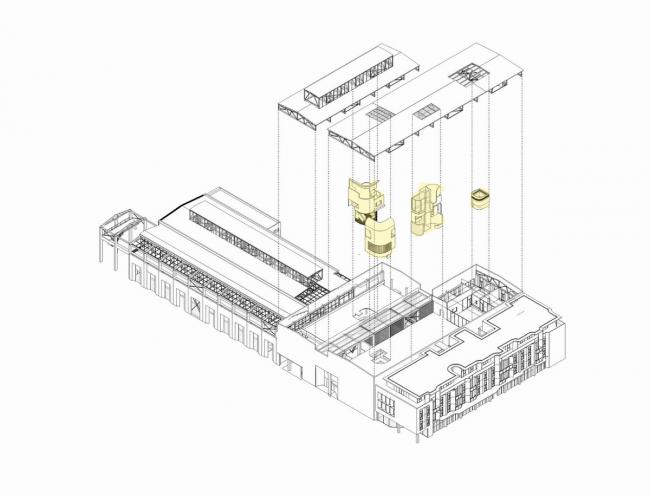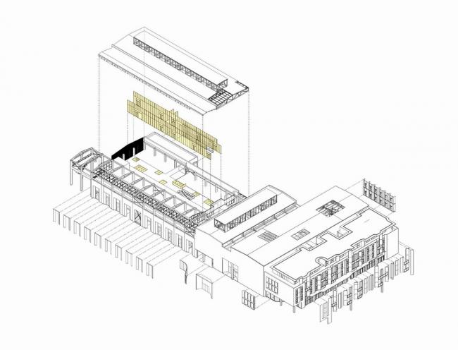 从与原有建筑空间和结构的对话开始,挖掘置入的新功能空间的主题特征,在自身合理组织的同时也时刻跟原有结构体系产生碰撞与磨合。最后,通过对原有结构的局部退让、包裹、强化等空间关系处理,让充满序列感的结构体系暴露在城市空间中。