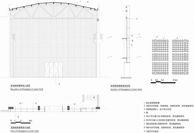 ▲扁钢幕墙细部