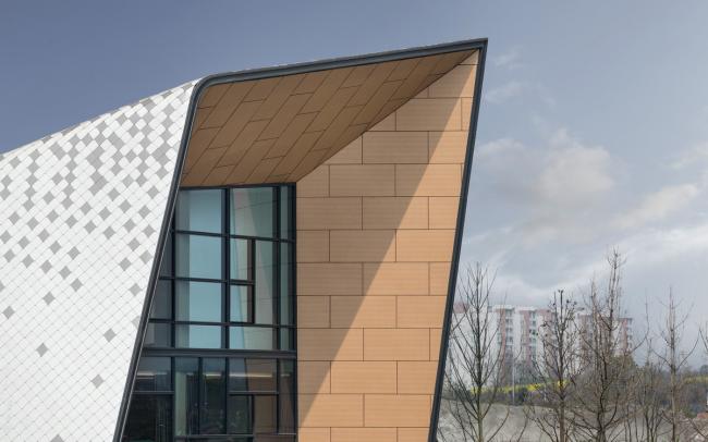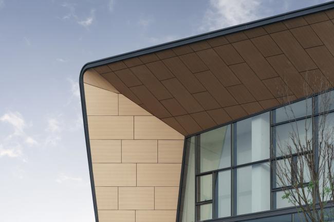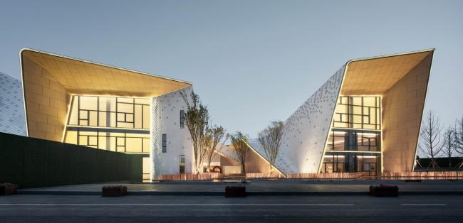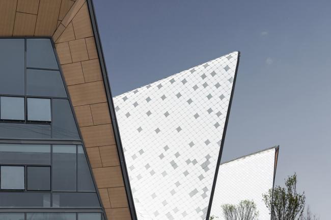 地块东西北三向均被城市景观带包裹,而北向的百米绿化带更是成为城市重要景观轴。建筑形体契合异形场地,将景观引入建筑,以建筑呼应景观。儿童通过与自然的接触可以得到各种体验的同时,建筑物本身亦可作为环境教育的教材被灵活使用。