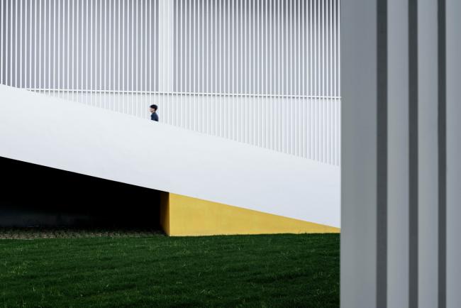 白色实际是能够强化对自然界所有其他色彩感觉的颜色,对着白色表面能够最好地欣赏光影虚实的表演。设计师用白色来澄清建筑概念,提高视觉形式的力量。白色建筑与自然环境形成图底关系,在光线的作用下,白色墙面映衬着自然,这种对比并不是破坏自然环境,而是与大自然既对立又融洽。
