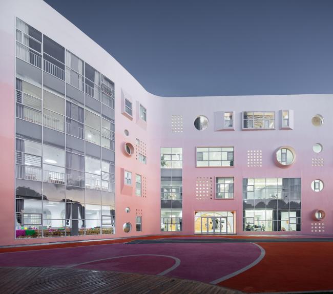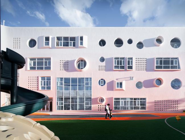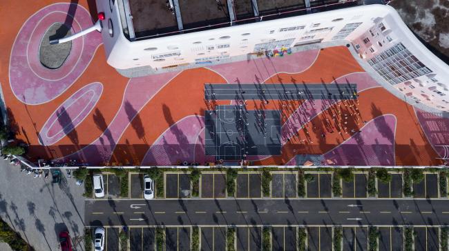 室外活动区带来有趣的碰撞 ———混凝土以及色彩的对比达成了和谐统一,新与旧的碰撞则带来了更多空间构成的可能性,室外活动区域是孩子们最主要的日常活动范围,设计师希望此区域更具有开放性和灵活性,可以满足不同年龄段学生对于空间的需求。当阳光穿梭有趣的路径时,在地面上透射出五彩斑斓,变成一个个有趣的光影游戏,正是这些小细节,让校园显得如此特别,此区域更是深受家长和孩子的广泛好评与喜爱。