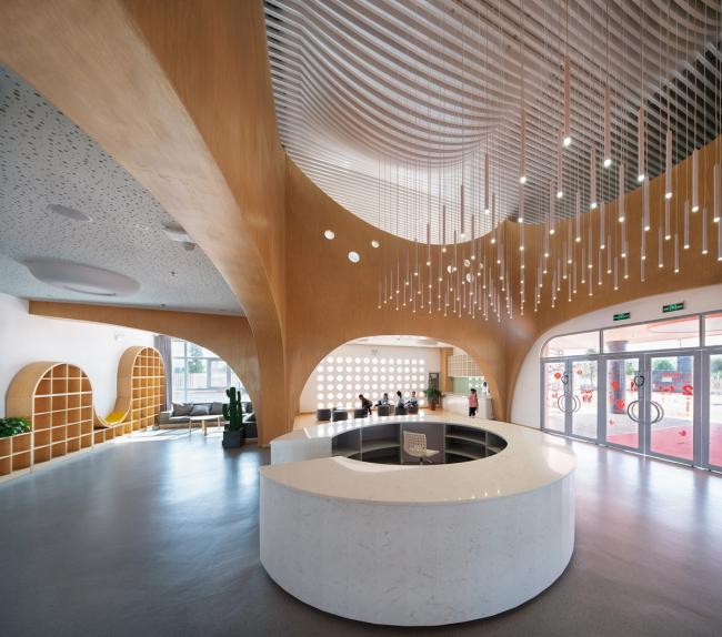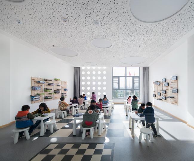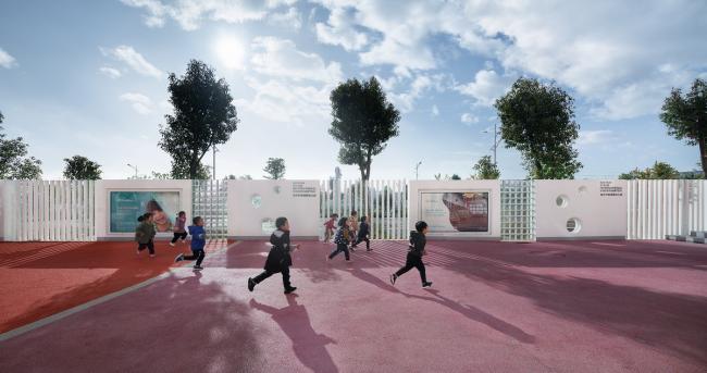 校园的每个区域都有着自己的功能,得益于天赋的自然条件,概念的立意之初,建筑师就力图创造一个可以与自然交融的校园,伴随着清晨阳光的冉冉升起,阳光打在渐变色的墙砌上,水,空气都伴随着微风自然而然的与孩子们建立起了完整的联系,孩子们一边呼吸着新鲜的空气,一边感受着自然的和谐,漫步其中,带来了非凡的体验。