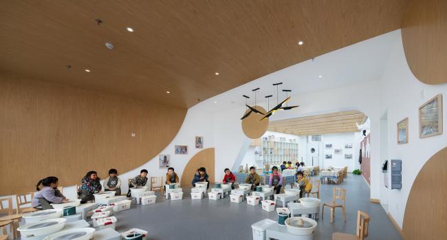 设计团队将闽南福建土楼,哈尼族蘑菇屋的建筑结构保留下来,将传统文化元素与现代建筑相融合,置入当地特色艺术,设计师利用素朴的建筑语言表达毫无修饰的建筑内涵,并在在这个传统的躯壳里融入现代的设计手法,打造具有民族特色的质感,给孩子们留下了一个既有特色又现代的建筑作品,也更好地适应了当地孩子们的生活方式。