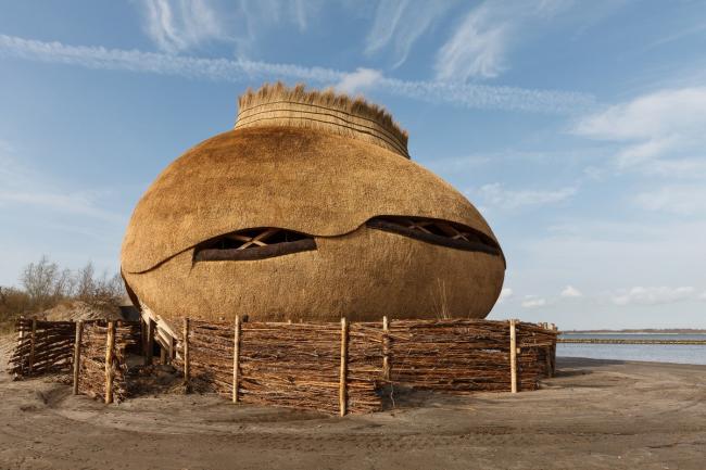 “鸟蛋”的下半部分由固雅木(accoya)制成,能够抵御每年数次的淹水。上半部分由松木制成,在全年保持干燥状态。“鸟蛋”顶部覆盖着一层茅草,是从海防的内侧收获而来。茅草屋顶则位于潜在最高水位线上方的位置。内部的地面选用了复合木材(CLT)和混凝土,能够加强结构的稳定性。从“鸟蛋”中,游客们可以看到周围的一系列岛屿,以及哈灵水道和水岸的美丽景色。