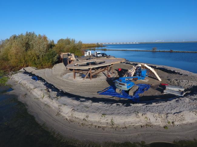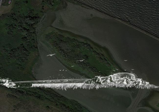 为了避免对鸟类形成干扰,游览路线的最后一段被设计为隧道,由再利用的系船柱和曾用于制砖业的红铁木板建造而成。隧道的内表面被沙子覆盖,能够为燕鸥或涉禽提供栖息环境,外表面则为崖沙燕提供了筑巢的凹洞。“鸟蛋”位于路线的终点,从这里可以观察到正在孵化的燕鸥以及各类生活在水中和水边的物种。