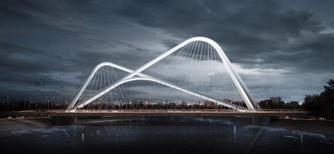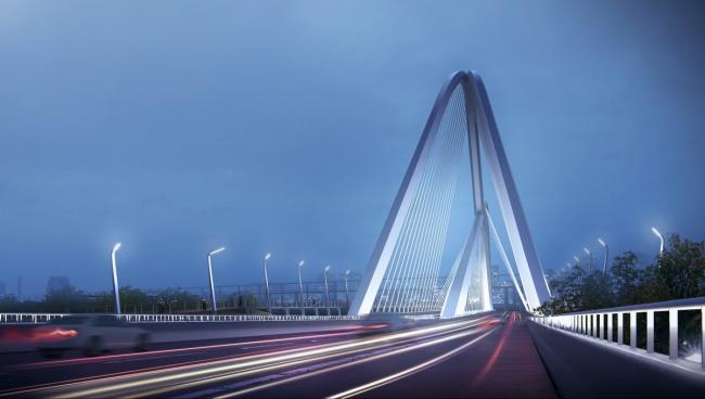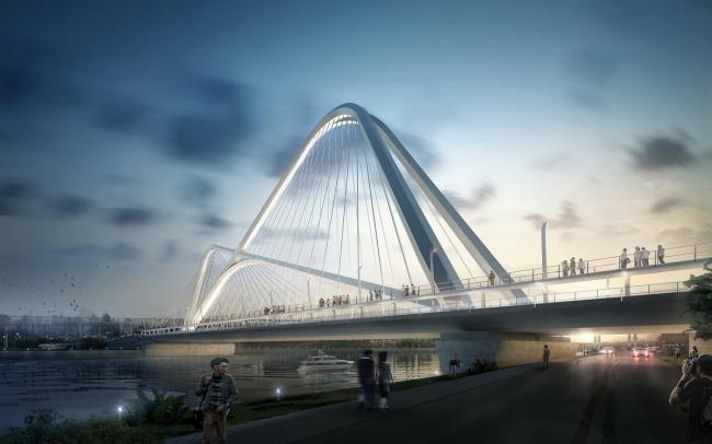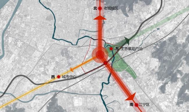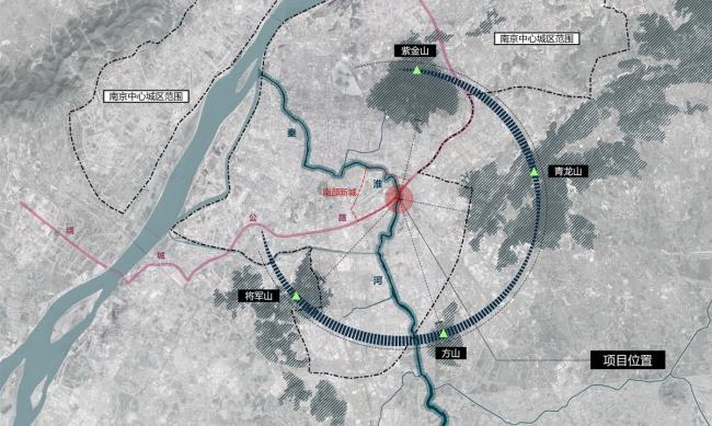 南部新城拥有得天独厚的地理位置,位居“将军山”、“方山”、“青龙山”、“紫金山”四座山峦的中央,四山的剪影交汇于此,形成桥的主体结构,流动的线条漂浮于秦淮河上,远远望去,如画山水。四个三角拱象征了汇聚的四座山,赋予了承天大桥稳定的结构和充满张力的形象。