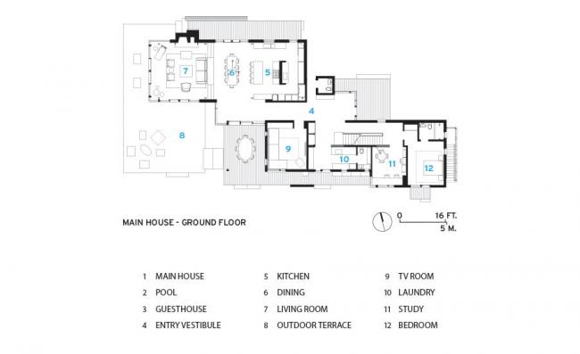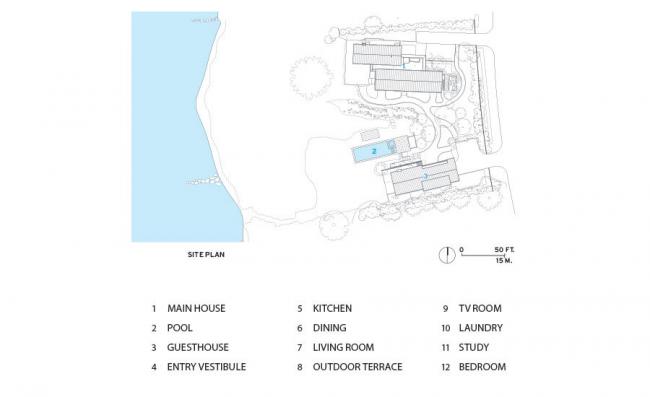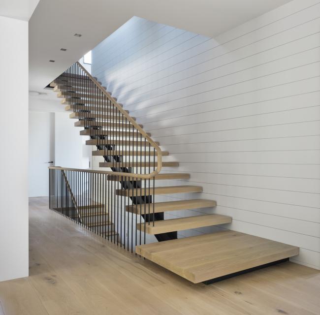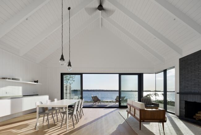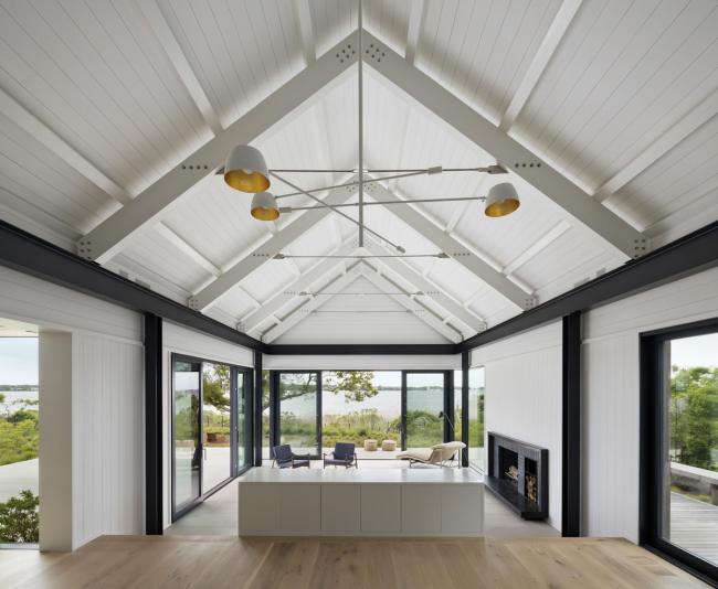 这两座建筑都作为居住空间使用,无论是室内还是室外,都希望尽量扩大视野范围,以捕捉夏日阳光与清风。蒙托克湖是这儿的焦点,但不是唯一一个,其次,还有许多檐下空间与广阔的水景相映成趣。主要的生活空间安排在接地的一层,使用玻璃和超大的滑动门分隔室内与室外,减弱室内与自然的边界。在房屋与水域之间种植当地的再生海岸植物,加强了建筑与自然之间的对话。