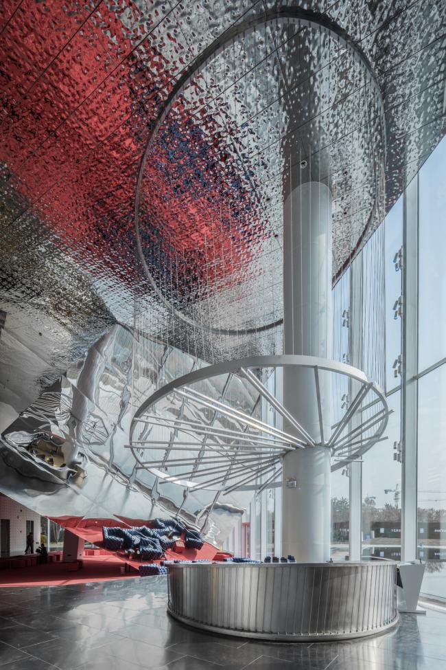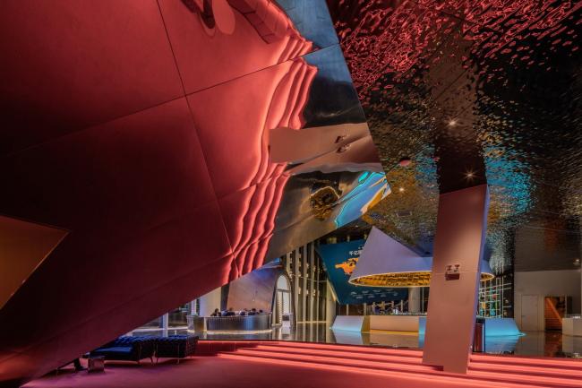 空间中大量使用了不同反光度和肌理的不锈钢金属板,同时也赋予不同的物体不同的颜色,形成空间中人与空间,物体,光,影像,色彩,材质(BIM工程师)变化丰富的互动。人行走在空间中每时每刻都会体验到不同的光影变化,仿佛置身于虚拟世界,新奇独特,美轮美奂。