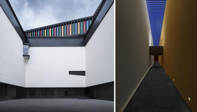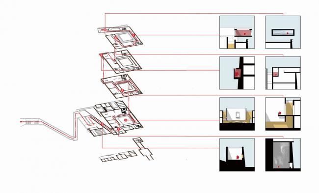 其次是空间叠加带来的特殊体验的路径:博物馆建筑原型从大昭寺主殿演化形成,当这种内向而稳定的空间结构和由天路概念形成的参观路径相叠加后,则在人与物理空间之间形成了非常多样化的关系,或高狭,或开阔,或幽暗,或明朗,仿佛在经历一段特殊的生命旅程。