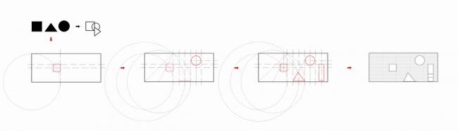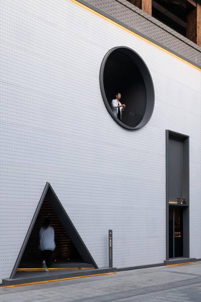 “地山空间”是一个集合空间品牌,位于上海松江区。创始人希望空间可以包罗万象:“吃”甜点、“喝”果茶,“玩”游戏,“乐”空间.(旗下茶饮品牌”芸茶“)基地紧邻曾经的“松江府”,所以我们希望运用现代手法的同时不忘传统。通过分析,从自然中提取构成其形态的基本几何形体:矩形、圆形、三角形,来阐述我们对于“包罗万象”与“地山空间”的理解。