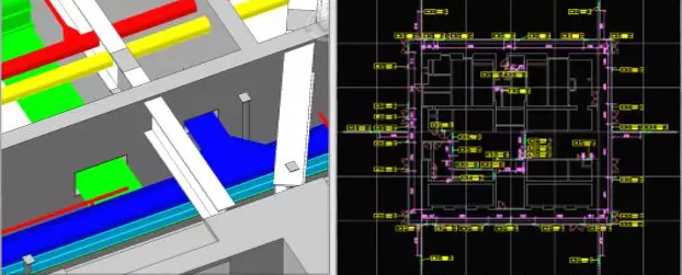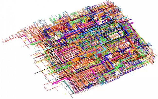 在BIM项目级应用上,针对劳务及工人需求及理论水平,我们将深化成果转化成cad文件,其中包含综合图(包含各专业管线)、专业图纸(如:空调水、空调风、综合支吊架等)