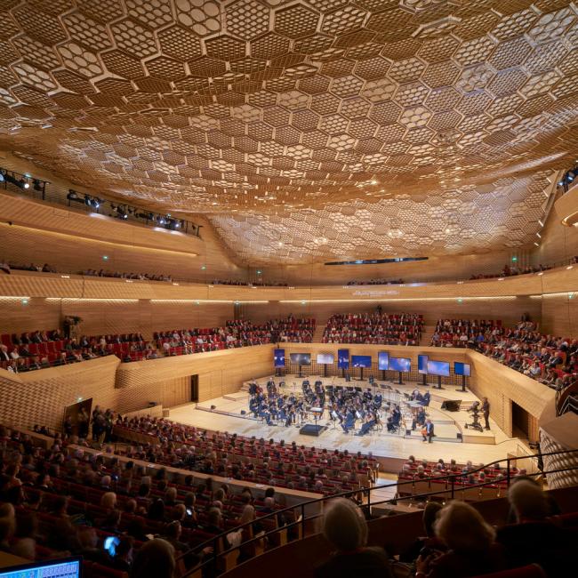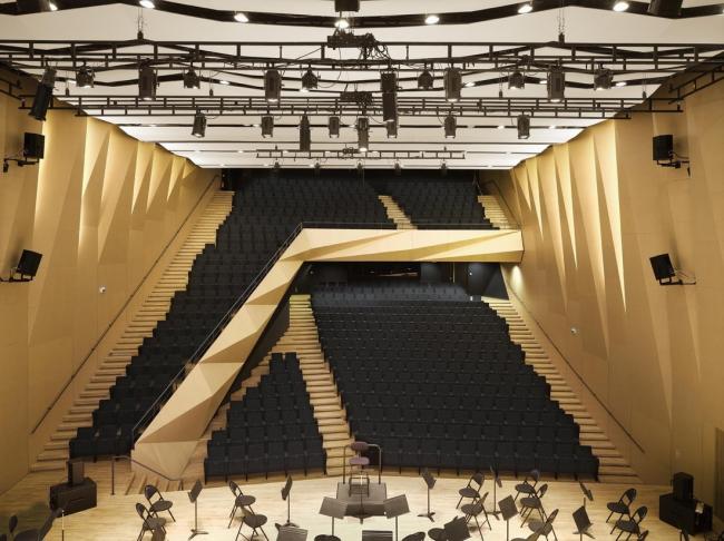 室内空间展现了当地和国外专家在声学和力学方面的技术知识,先进的设备和设施使其成为了全国最顶级的音乐厅。