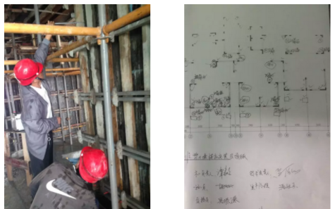 剪力墙、连梁模板加固完成后,由班组BIM培训全数自检合格后,由项目部质检员进行专职验收。对于专检发现不合格点翔实记录,经整改复查通过,方可下道工序施工。