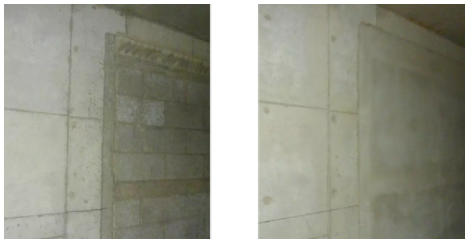 本工艺在保证一次结构剪力墙支模与成型质量同时,在砌体与剪力墙及连梁交接部位,一次结构阳角边口预留止口,作为30cm宽钢丝网工作面,有效保证清水剪力墙免粉刷与加气块砌体粉刷层交接处,无开裂现象。适用于主体结构中剪力墙、连梁、框架柱、框架梁。