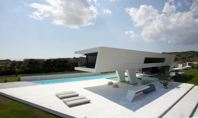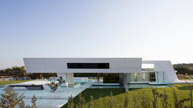 这个总建筑面积达1000平方米的私人住宅位于一块7000平方米的地块上。受主人对游艇的热爱的启发,房子的设计旨在提供一种在水上盘旋并且航行的感觉。