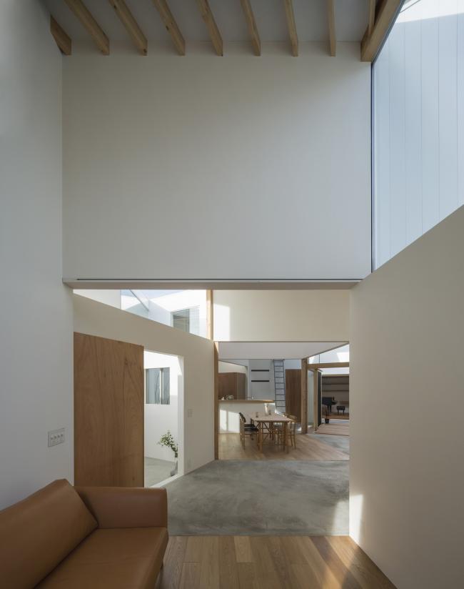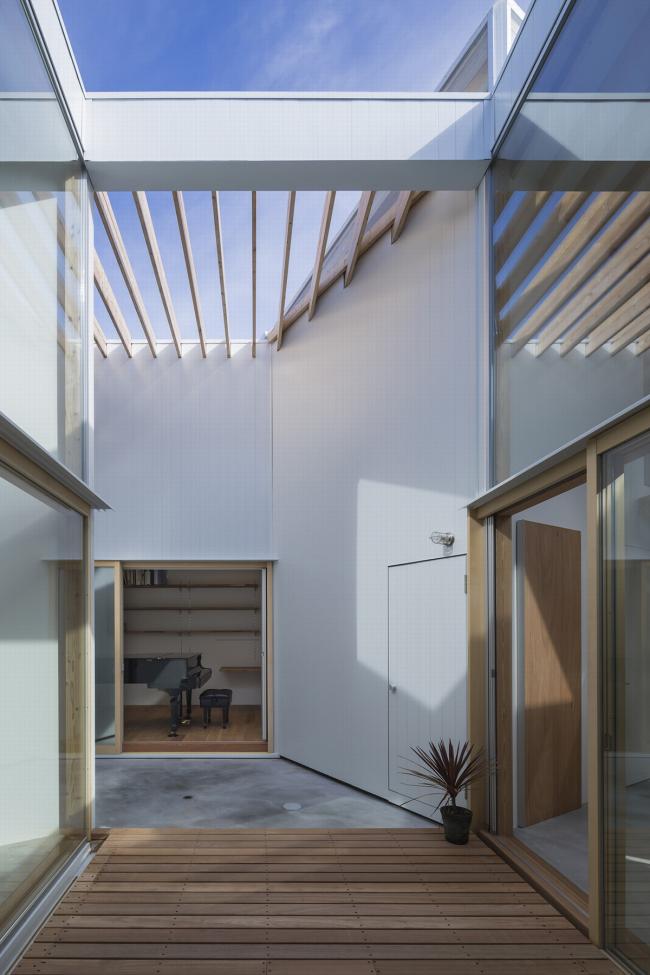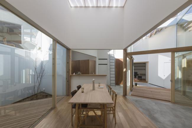 由于平面图案的设计,室内空间和庭院都被顶灯照亮,并被各种形式的光照亮。