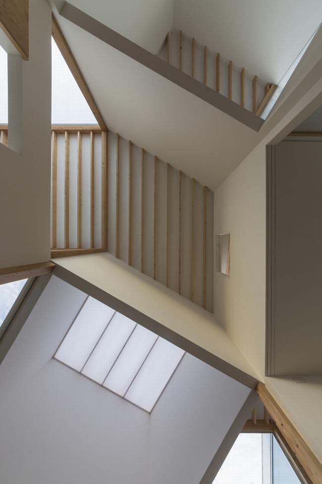 简单角度的几何空间是居民追求自由、充分利用自主空间的可能形式之一。因为我们熟悉直角设计的空间,所以很容易测量它们的空间体量和关系。然而,通过轻微地转动墙壁相交的角落,我们的空间意识突然变得复杂起来,觉得有限的空间仿佛扩大了。