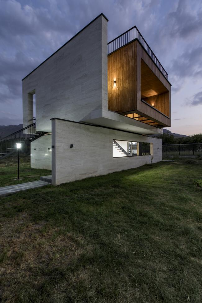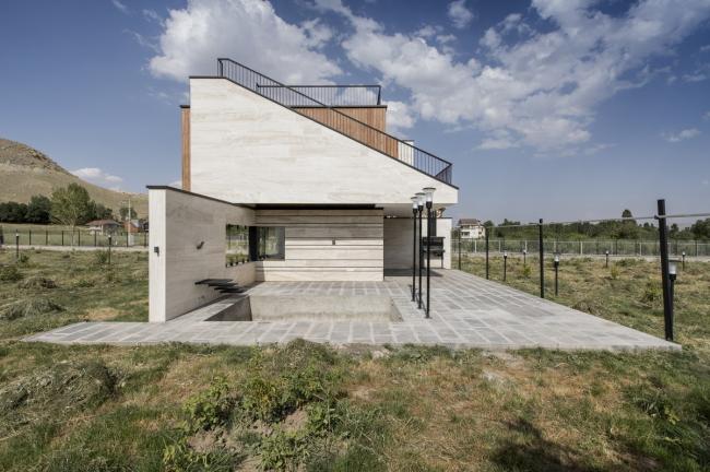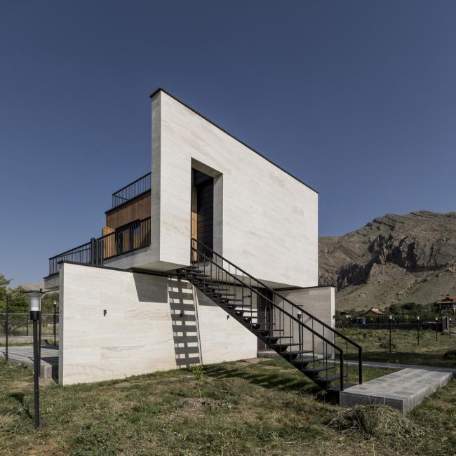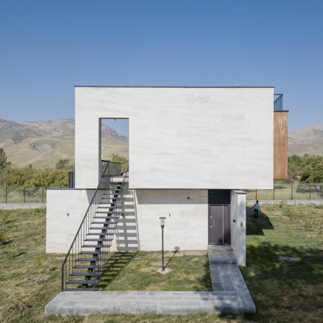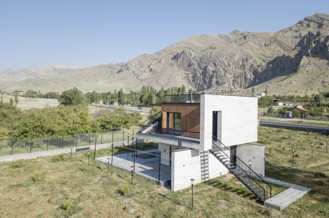 行走于西阿塞拜疆Maku中的Gajot旅游区时,可以看到一座像是轻轻地抱着一个木头盒子的没有任何装饰的白色建筑坐落于葱郁的环境之中。它是一个同时兼有内向性和外向性的构造,内向性是因为它通向室内空间的同时遮挡人们视线,而通过平台将人们引入室内空间这点能显现它的外向性。