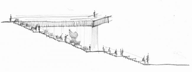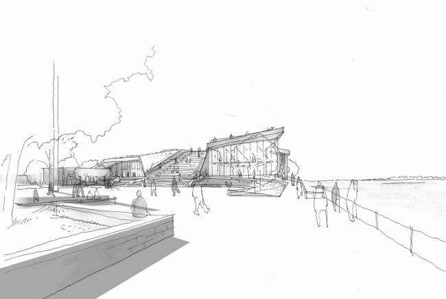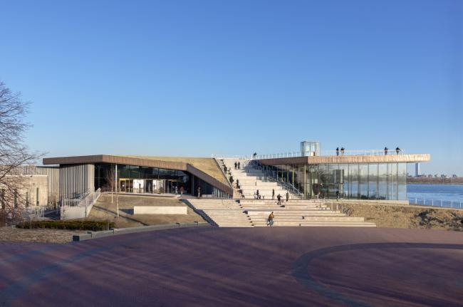 设计融合了建筑和景观。建筑回应了岛屿的布局,这是基于法国正式的花园传统,并在购物中心之上建立了一个自然景观。它的台阶、露台(BIM学习)和屋顶扩展了公园和地面上方的空地,将游客带入场地,创造了一个新的游客环境,使游客可以观赏、休息和野餐。
