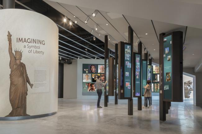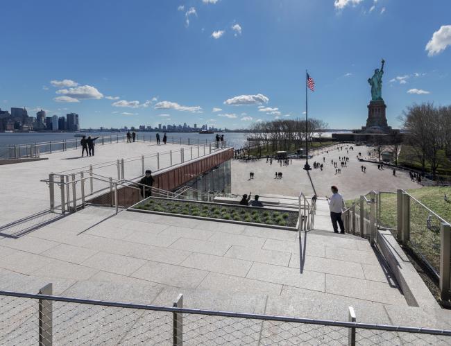自由女神像博物馆被设计为一个花园展馆,欢迎所有年龄、国籍和民族的游客。它位于自由岛官方步行街的北端,面向自由女神像有轻微的旋转。博物馆在连接其和雕像的主轴上,并通过通往屋顶的花岗岩楼梯将主轴延伸。游客的体验在一个戏剧性的花岗岩屋顶平台达到巅峰。在这里,访客可以畅通无阻的欣赏自由女神像、曼哈顿天际线和纽约港。