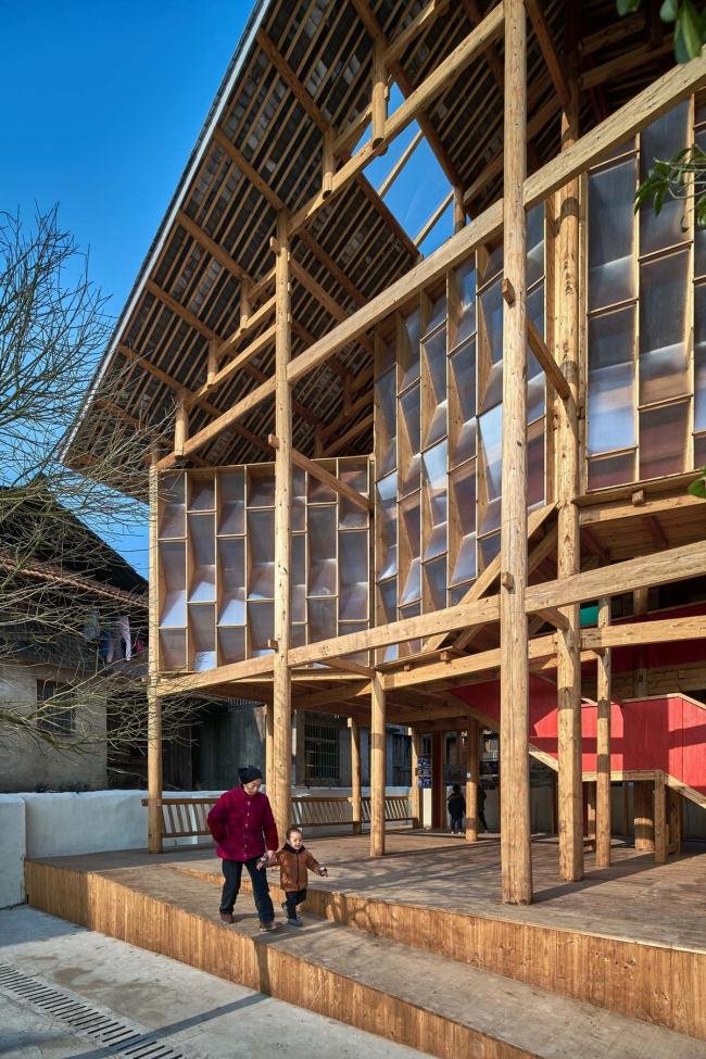 侗族的建筑有著一套不成文的建造规则。木匠们会因地制宜地调整、应用这些规则。所以即使每一座侗族建筑虽有著独特的面貌,但却有一种共通的语言。书屋的设计由中国西南少数民族从远古保存至今的“干栏式”建筑为起点,应不同空间、功能和形态的需要重新组织结构。书屋的设计,乍看是传统的侗族建筑,但当人们参与到空间中去就会发现它是新与旧的融合。这种设计方法为传统的材料和工艺注入了新的生命。