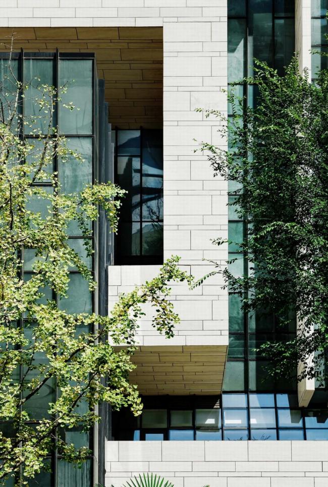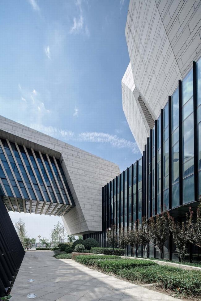 虚实相生:各馆的功能对自然采光通风需求有所不同,如门厅、艺术沙龙、创作室、阅览室、音乐厅、展厅等,外立面则以玻璃幕墙、石材百叶、大面积实墙等作为对应,以求虚实相生、合而不同。