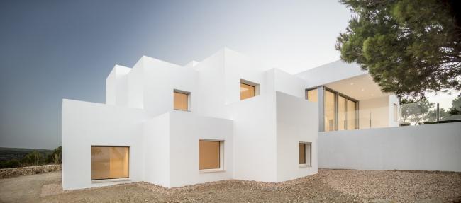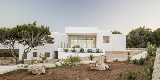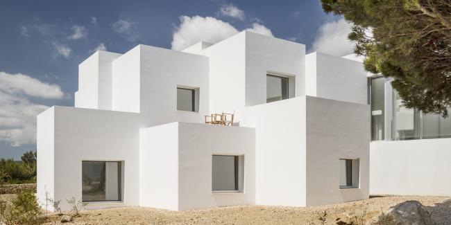 房屋位于西班牙梅诺卡岛东北部的Coves Noves,占地2600平方米。整个城市化的部分都建在一个斜坡上,给住宅提供了令人惊叹的海景。然而,这片位于顶部的特殊土地还可以欣赏岛上最高山Monte Toro的美景。这片内陆景观因被划为自然保护区,避免了受到未来发展的影响。