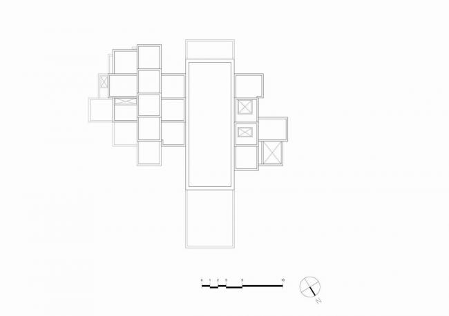 两根长1米和2米,嵌入混凝土中的高钢 Vierendeel 梁支撑在隐藏的钢支架上,实现了无柱屋顶的轻盈感。屋顶的盘旋和所有体块之间的严格切线给人以自然坡地与像素单元相平衡的印象。像素通过挤压,互相连接。为了控制施工成本,设计使用了简单的当地材料,如立(BIM)面的混凝土块和白色石膏。