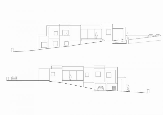 客户的项目要求包括5间卧室,一个车库,一个游泳池和能欣赏海景山景的强烈愿望。为了满足这个要求,我们设计了一个长平台,来连接两边的景致。这个长平台被称为走秀台。在设计构想中,这个平台是一个可容纳重要公共区域(起居室和餐厅)的室外空间,并可以在必要时滑动隐藏窗户防风。实际上客户计划将这所房屋当做当地气候的避暑别墅,人们大部分时间都会在户外度过。