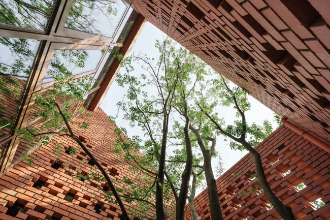 将原有教材科屋顶坡度作为元素符号进行提取、转译,使空间保持整体性的统一,又通过材质、尺寸、细节的处理,营造空间识别性、延续原有的场所记忆。