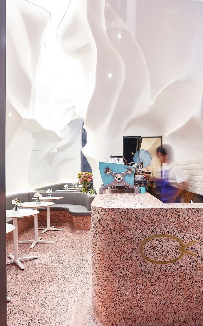 项目名称:布鱼咖啡盈科店设计公司:SODA建筑师事务所邮箱:[email protected]设计&建成时间:2018主创设计师:姜元、宋晨设计团队:唐(BIM教程)佳音、陈菲、柳攀攀、强志文、王姗、郝智远、王玥华、石鸣春涧、陈新如地址:北京市朝阳区工人体育场北路甲2号面积:28m²摄影:陈惜玉视频艺术家:亚洲施工方:北京美屋建筑装饰工程有限公司业主:布鱼餐厅主要材料:GRG玻璃纤维石膏板,水磨石,银镜