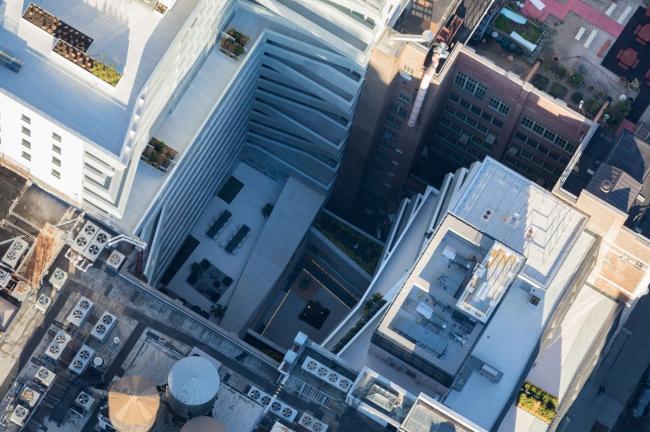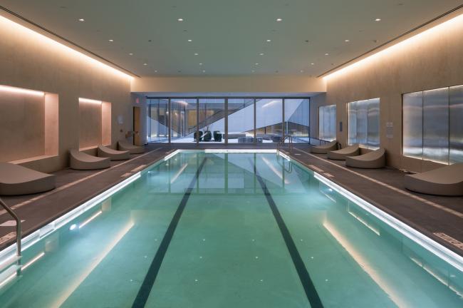 这个山谷是繁华的第23街和莱克星敦街中间的一块宁静绿洲,它环绕在住宅设施和露台旁边,打造出了一个可以内外生活的综合体。面对庭院的两座塔楼的内部立面与外部立面的三维空间产生了共鸣 —— 一个容积式阳台的带状结构呈现出了一种雕塑般的视野,直达天空。虽然形状相似,但山谷的轻质材料,穿孔的铝材增强了日光,同时也赋予了庭院独特的个性。