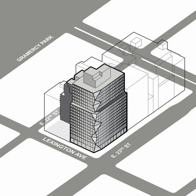 ▲ 站在莱克星顿和22街交叉口看独立的建筑体量