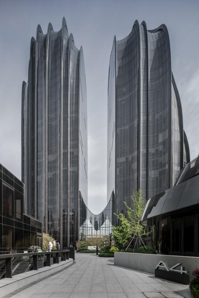 充满未来科技感的朝阳公园广场,毗邻朝阳公园,强调山水理念,用中国古代“借景”的手法将建筑融入在整个朝阳公园与城市之间,整个项目由10座建筑单体组成,高低错落有致,形成一幅山水画面。